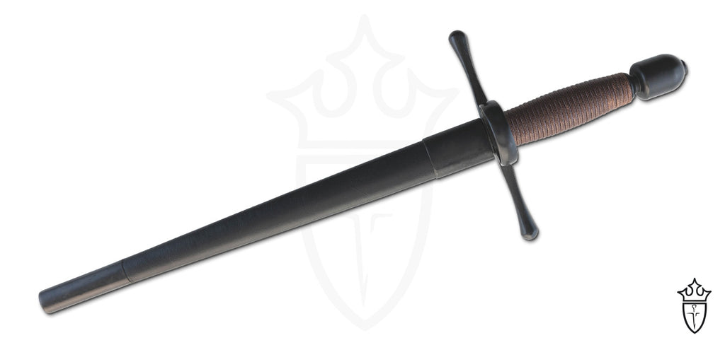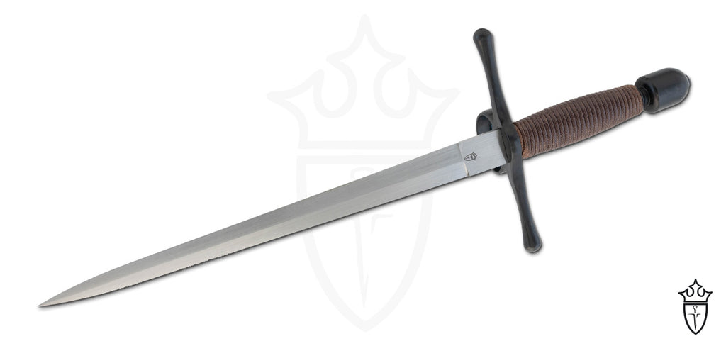 16.5" (41.91cm) overall. 11" (27.94cm) satin finish high carbon stainless blade. Brown cord wrapped handle. Steel guard and pommel. Black leather scabbard. Boxed.