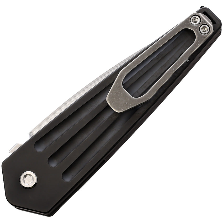 4.75" (12.07cm) closed. 3.5" (8.89cm) tumbled finish S45VN stainless blade. Black PVD coated titanium handle. Lanyard hole. Pocket clip. Water tight case. Manual safety.