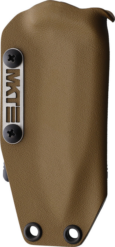 8" (20.32cm) overall. 4" (10.16cm) tumbled finish CPM-20CV stainless blade. Tan G10 handle. Full tang. Lanyard hole. Tan Kydex belt sheath. Boxed.