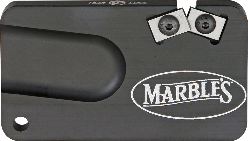 Measures approximately 3" x 1 3/4" x 1/4". Black aluminum body with Duromite cutter sharpening inserts. Hardened ceramic surface is chemically bonded to the body. Side of sharpener has "V" groove for sharpening fish hooks, broadheads and other pointed objects. Black nylon slip pouch. Easy to use. Conveniently fits in pocket. Designed for everyday use. Rust resistant. Hang packaged.