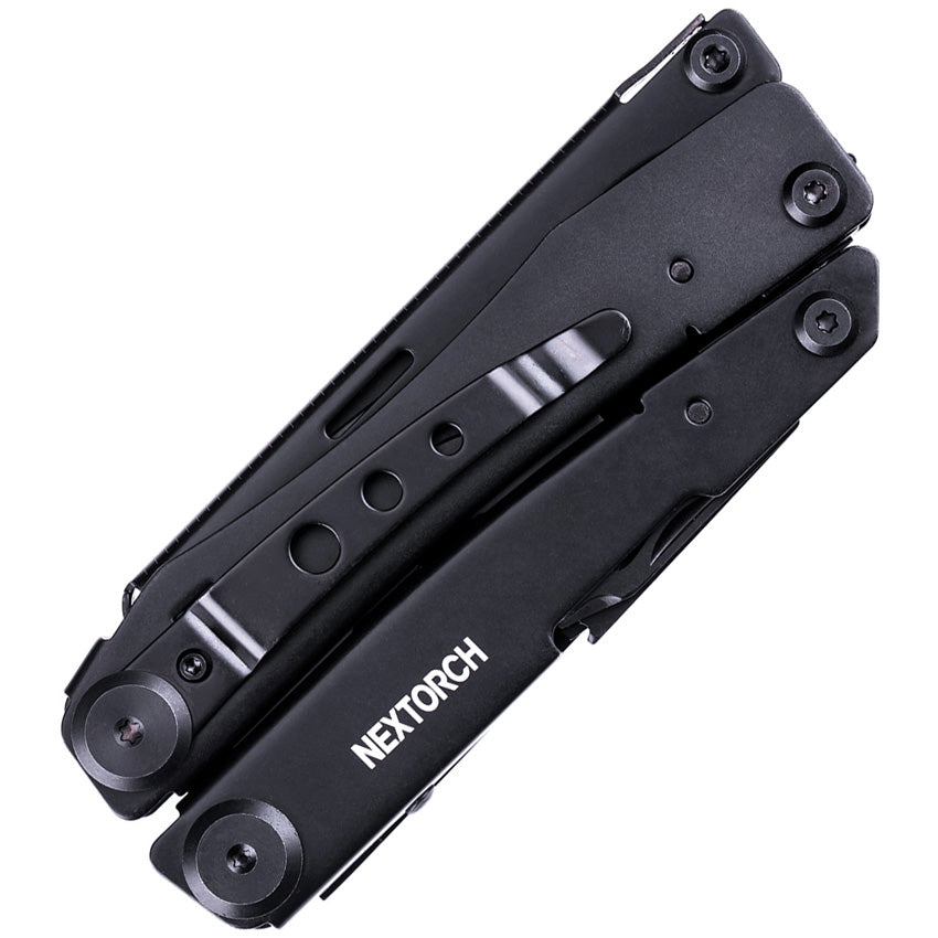4.38" closed. 6.5" overall. 3Cr13 stainless handles. Tools include: Pliers l Needlenose pliers l Wire cutter l Saw blade l Large blade l Phillips screwdriver l Wire stripper l Can opener l Bottle opener l Flat head screwdriver l Glass breaker l Scissors l Ruler I Hard wire cutters I Thick wire cutters I Line cutter. Black nylon belt sheath. Clam packed.