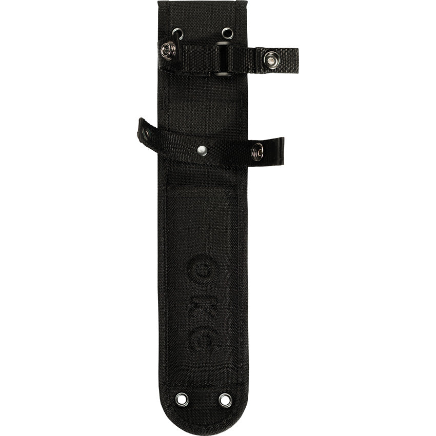 9.13" (23.19cm) overall. 3.5" (8.89cm) black finish partially serrated S35VN stainless blade. Black linen micarta handle. Full, extended tang. Lanyard hole. Black leather belt sheath. Boxed.