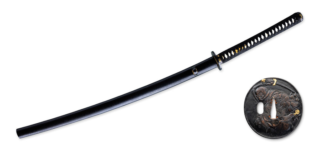 - Black Cord Wrapped Handle: The handle of this katana is wrapped in black cord, providing a comfortable and secure grip.