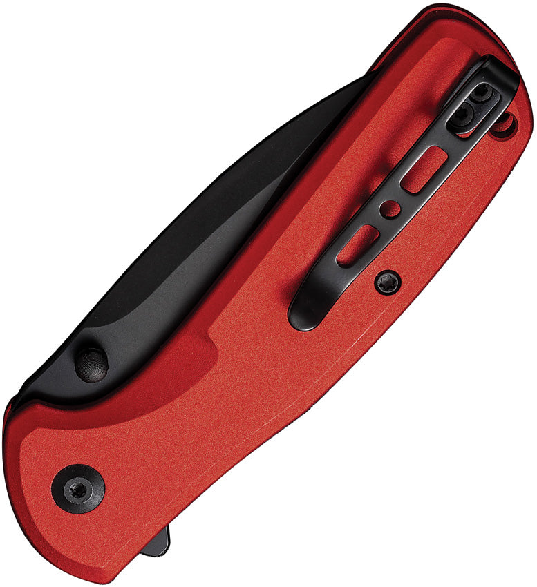 4" (10.16cm) closed. 3" (7.62cm) black stonewash finish 9Cr18MoV stainless blade. Red aluminum handle. Extended tang. Thumb stud. Lanyard hole. Pocket clip. Boxed.