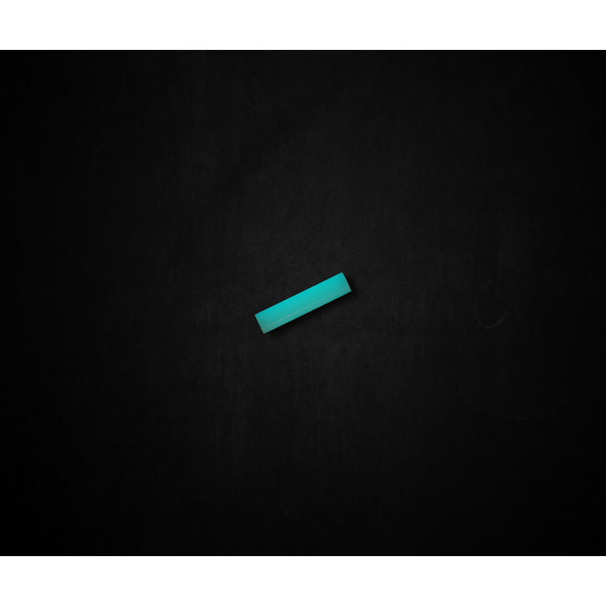 1.13" overall. Glow color: Aqua. Comes with neoprene washer and O-ring. 0.5" diameter. Will glow for up to 12 hours when exposed to sunlight or UV light. Bulk packed.