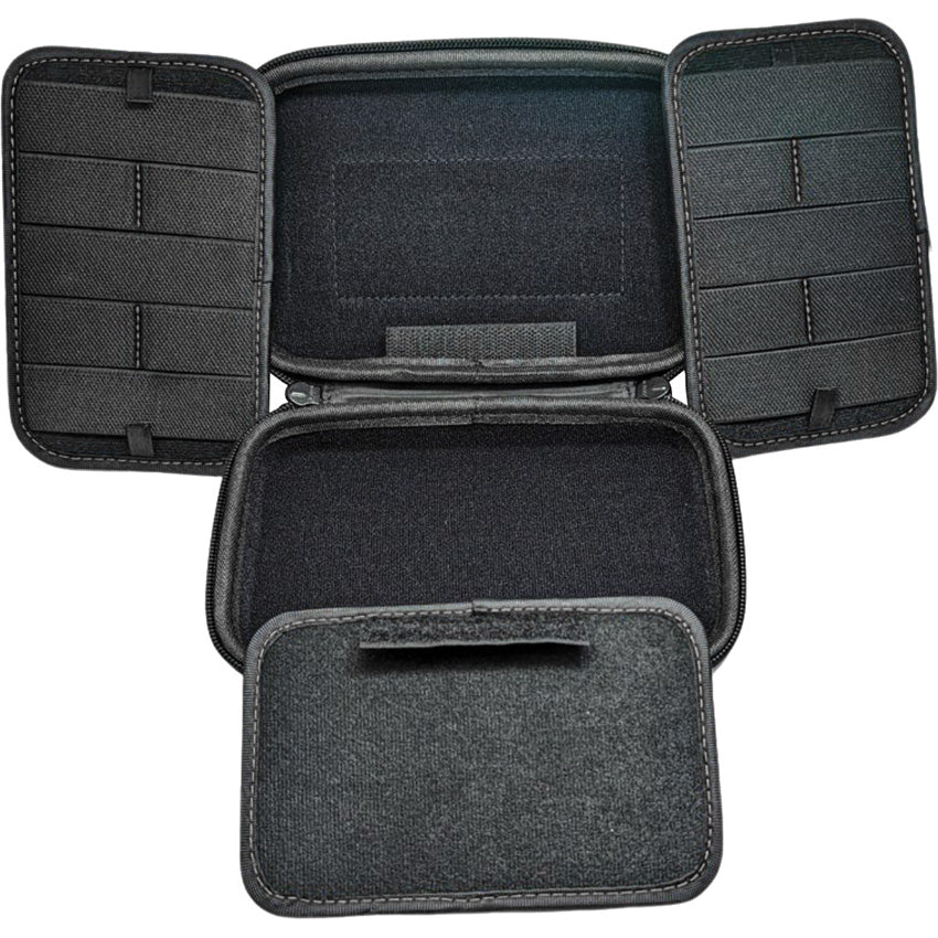 Dimensions: 7" x 4.5" x 2". Three inner flex panels are modular and removable for easier access to contents. Panels also feature a pull tab for easier removal and placement. Carbon fiber shell. Bulk packed.