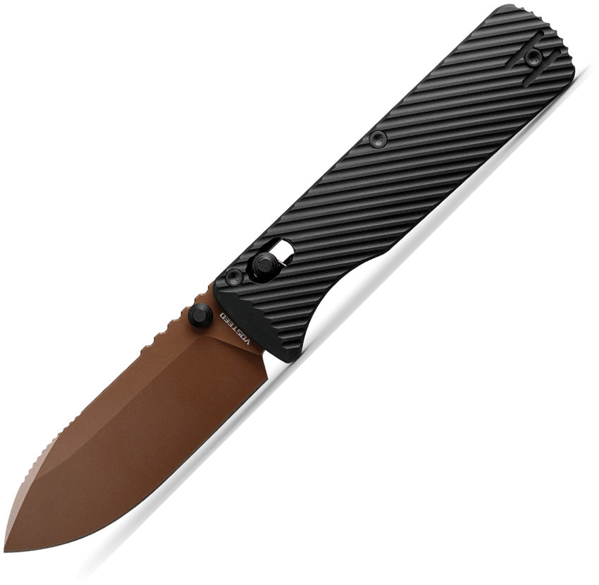 3.88" (9.86cm) closed. 2.88" (7.32cm) Bohler M390 stainless blade. Black sculpted aluminum handle. Thumb stud. Pocket clip. Copper Dune finish zulu blade. Quick-Swap scale system. Ball roll bar. Boxed.