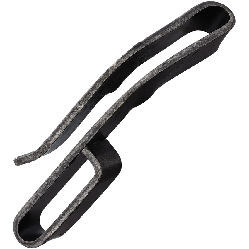 Fits virtually any billhook, machete, or chopping knife so long as the blade is thinner than 9mm (0.35") and the width of the handle where it meets the blade is 1.8" or less. Accepts belts up to roughly 1.7" wide. Spring steel construction. Bulk packed.