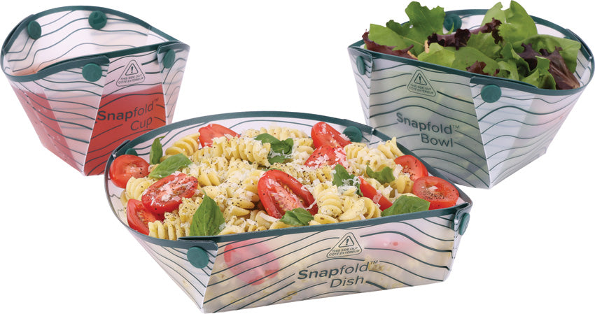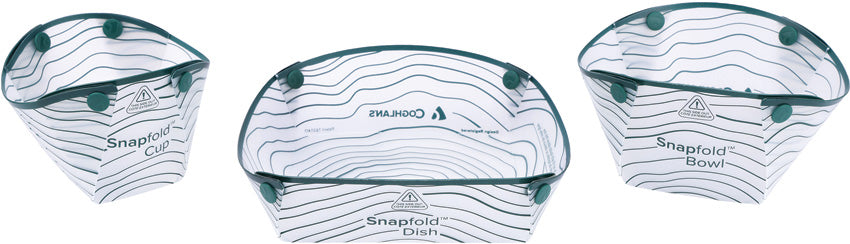 Comes with cup (8 oz), bowl (16 oz), and dish (7.7" x 7.4"). Lightweight and compact for backpacking and camping. Durable, reusable, and flexible. Hang packaged.
