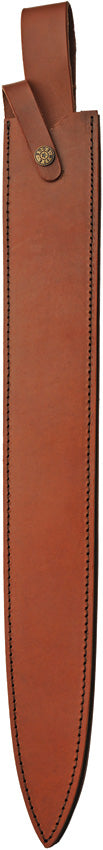 25 (63.5cm) overall. 19 (48.26cm) Damascus steel blade. Wire wrapped handle. Steel pommel. Steel guard. Brown leather belt sheath.