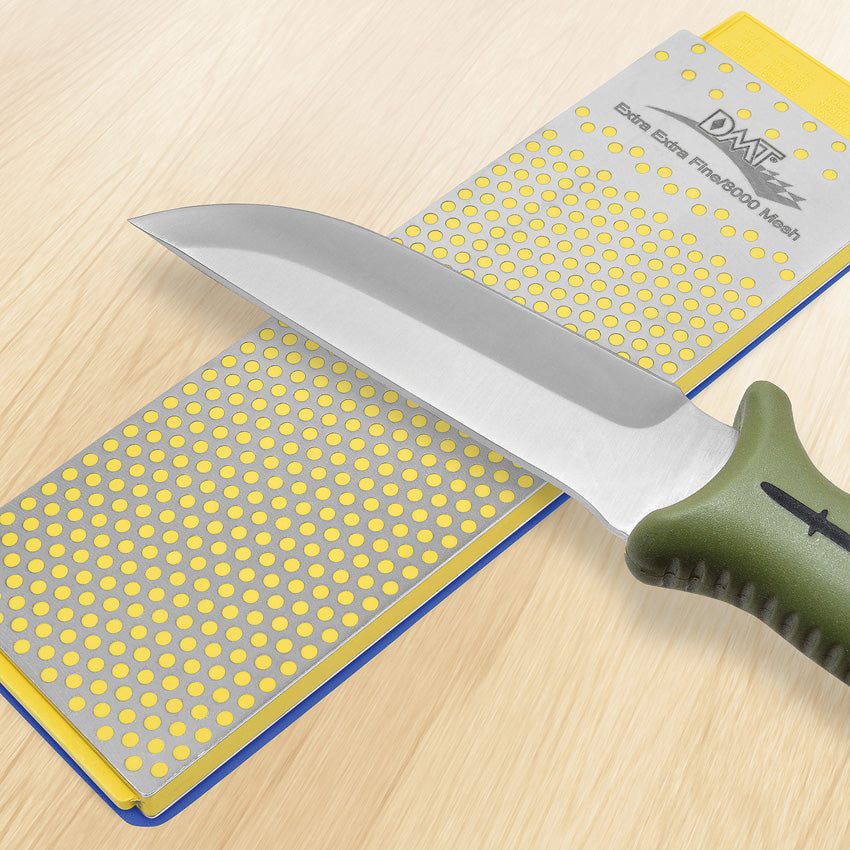 Dimensions: 8" x 2.63". Grit: Extra extra fine l Fine. Boxed with hanging tab.