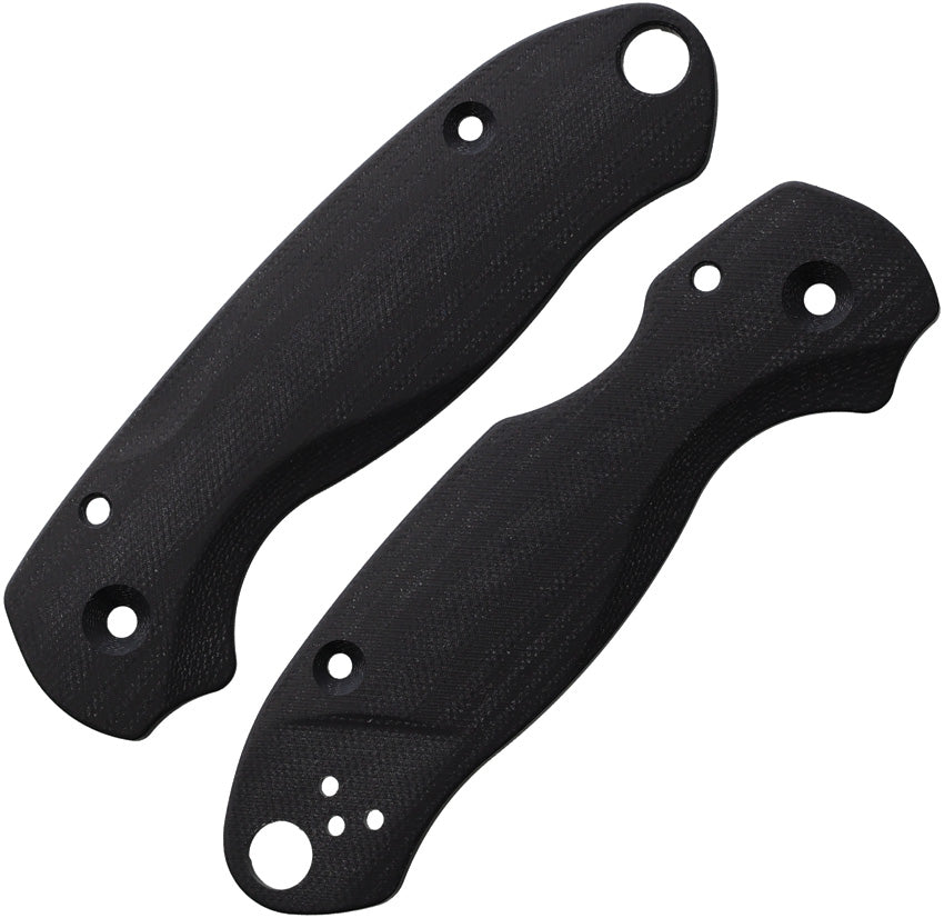 For Spyderco Paramilitary 3. Black G10 construction. The backs have been milled out to receive the nested liners. Includes pocket clip holes for tip-up, right hand carry. Not compatible with lightweight models. This product is not produced by nor endorsed by Spyderco and may void the manufacturer's warranty. Bulk packed.
