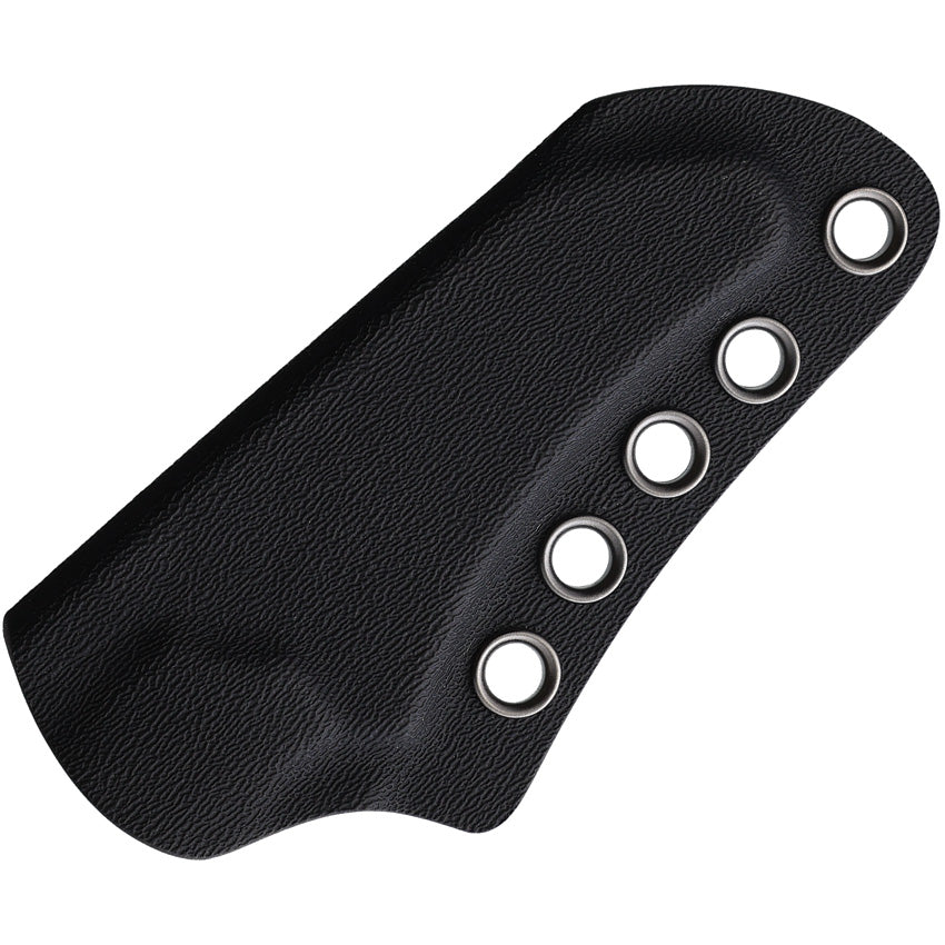 6.88" (17.48cm) overall. 3" (7.62cm) blade. Blue plastic handle. Full, extended tang. Finger ring. Blue finish aluminum construction. Black Kydex belt sheath. Bulk packed.
