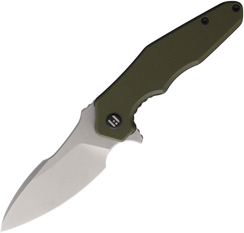 4" (10.16cm) closed. 2.88" (7.32cm) stonewash finish D2 tool steel blade. Green G10 handle. Extended tang. Lanyard hole. Boxed.
