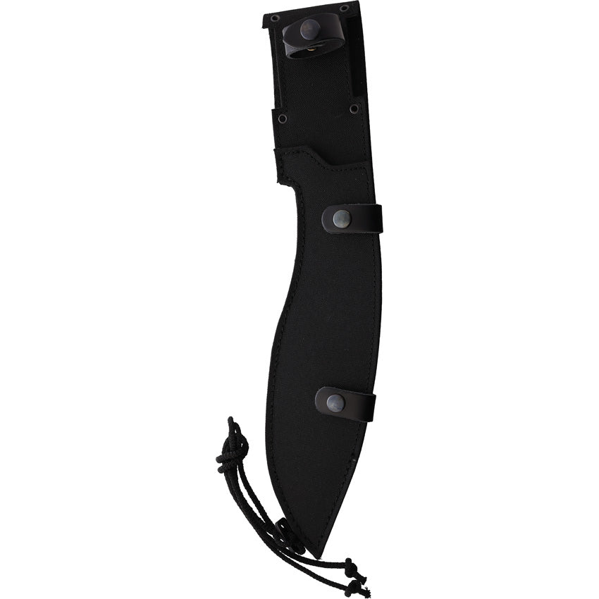 16.13" (40.97cm) overall. 10.88" (27.64cm) satin finish MV-58 stainless blade. Black micarta handle. Full, extended tang. Lanyard hole. Black nylon belt sheath.