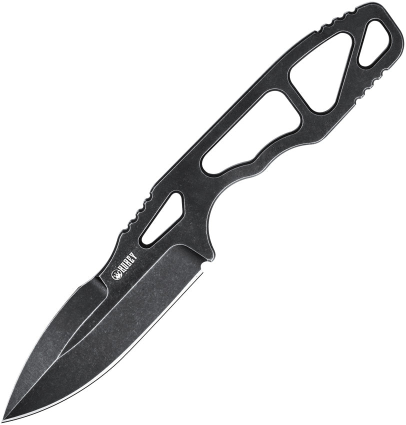 7.63" (19.38cm) overall. 3.13" (7.95cm) black stonewash finish AUS-10A stainless blade. Skeletonized handle. One-piece construction. Black Kydex neck sheath. Boxed.