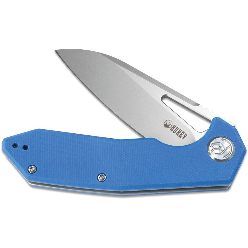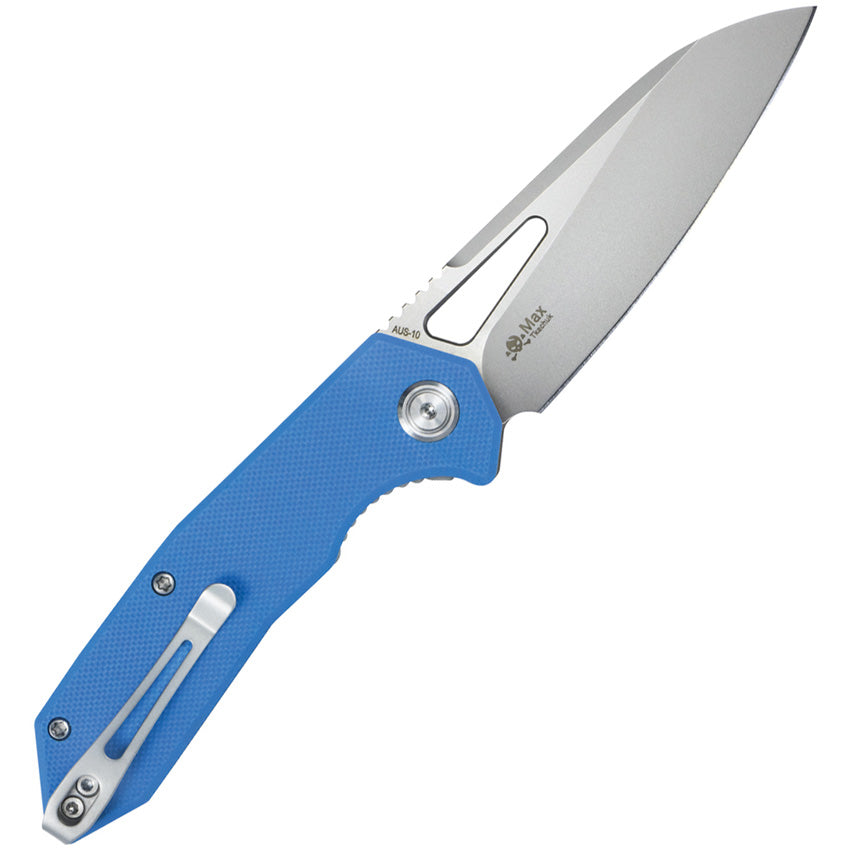 4.13" (10.49cm) closed. 3.15" (8cm) satin finish AUS-10A stainless blade. Blue G10 handle. Thumb pull. Pocket clip. Boxed.