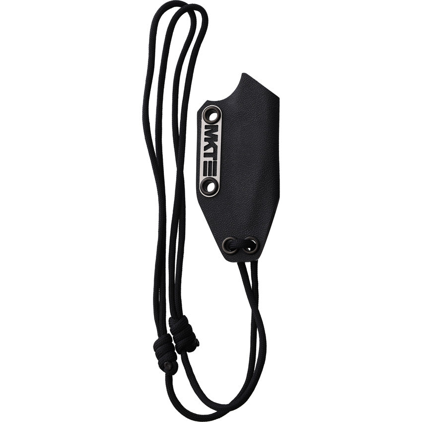5.5" (13.97cm) overall. 2.25" (5.72cm) tumbled finish S35VN stainless blade. Skeletonized handle. One-piece construction. Lanyard hole. Black Kydex neck sheath.