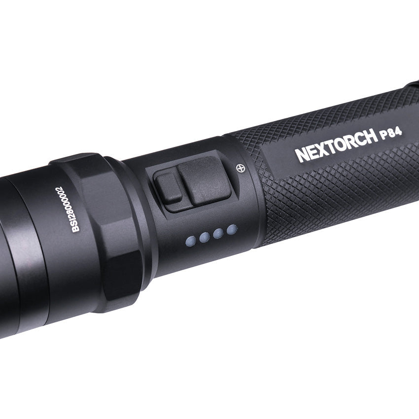 6.25" overall. Rechargeable. Water resistant. Impact resistant. Strobe. White, red, and blue LEDs. 260m beam distance. Nano ceramic strike bezel. Modes: High (3000 lumens, 2h 45m runtime); Medium (600 lumens, 4h 30m runtime); Low (36 lumens, 60h runtime). Red/blue flash mode. Independent switch design. Type-C direct charge. LED battery indicators. Requires (1) 21700 battery (included). Aluminum construction. Color: Black. Boxed with hanging tab.