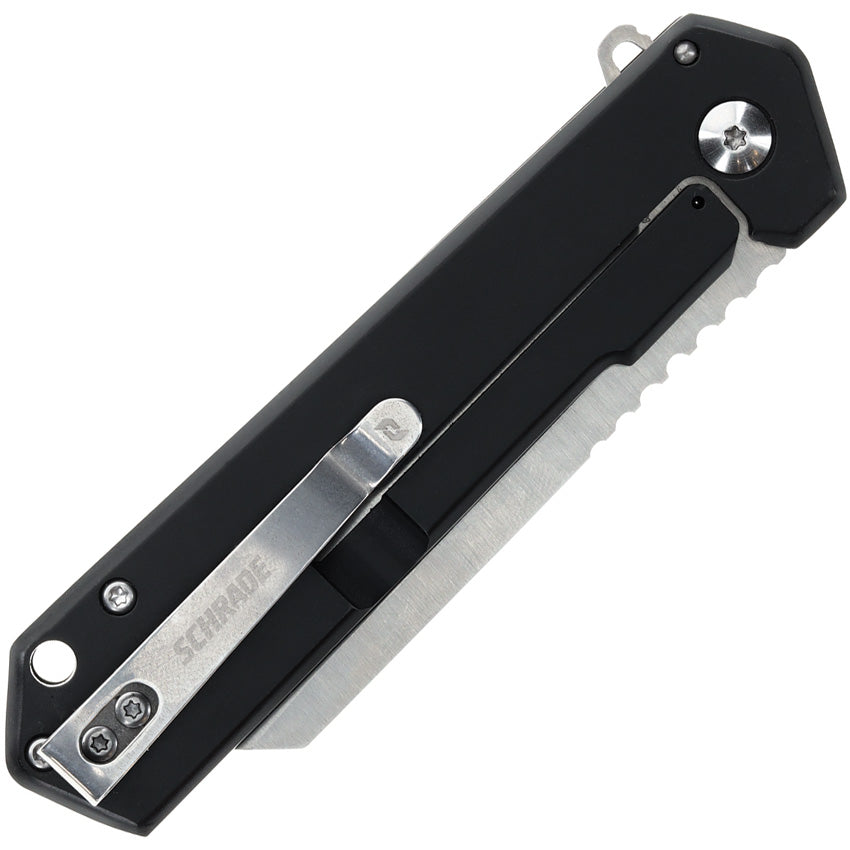 4.25" (10.8cm) fermé. Lame de 3.25" (8.26cm) en acier inoxydable satiné AUS-8 en pied de mouton. Poignée G10 noire et verte avec poignée arrière en acier inoxydable noir. Soie allongée. Trou de lanière. Agrafe de poche. Palourdes emballées.