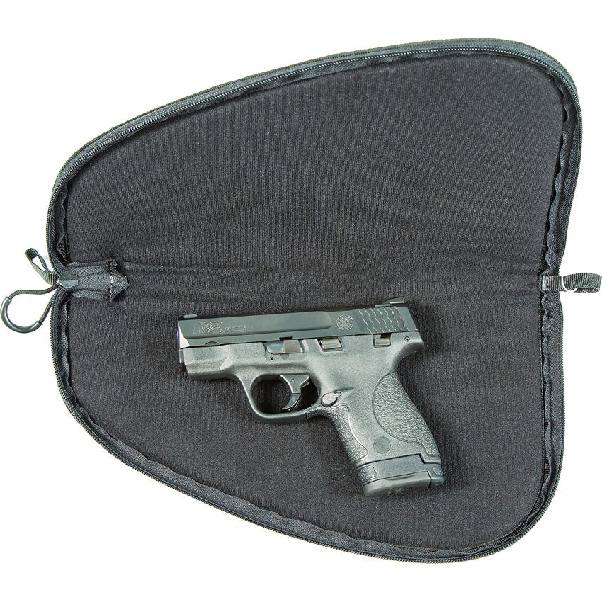 Dimensions: 9" x 6" x 1.5". Full length zipper. Padded walls for protection. Good for individual handgun storage or transport. Ballistic nylon construction. Color: Gray. Bulk packed.