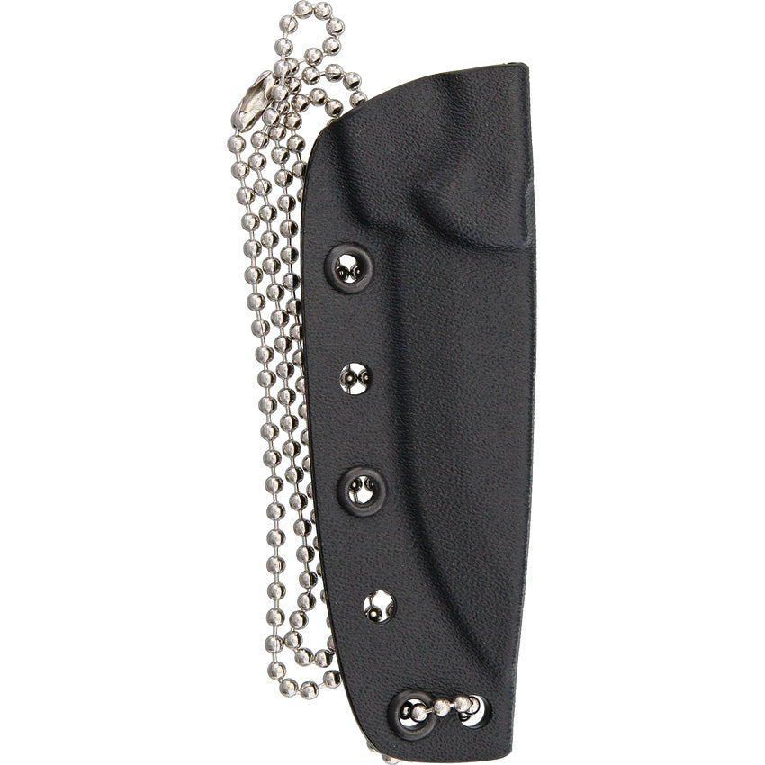 6 1/8" au total. Lame en acier à haute teneur en carbone 1095 de 2 3/4" avec finition bicolore bronzée et mate. Pleine soie. Poignées en toile micarta noire. Trou de lanière. Gaine Kydex noire moulée avec chaîne de cou perlée. Livré avec un sifflet de survie TOPS bonus.