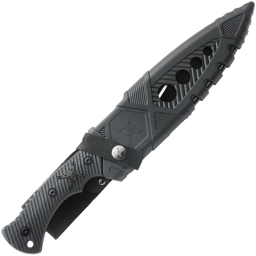 13,5 pouces au total. Lame de 8,5 pouces en acier inoxydable 2Cr13 à finition bicolore. Manche G10 noir. Pleine soie. Trou de lanière. Gaine de ceinture en TPU noir. Encadré.