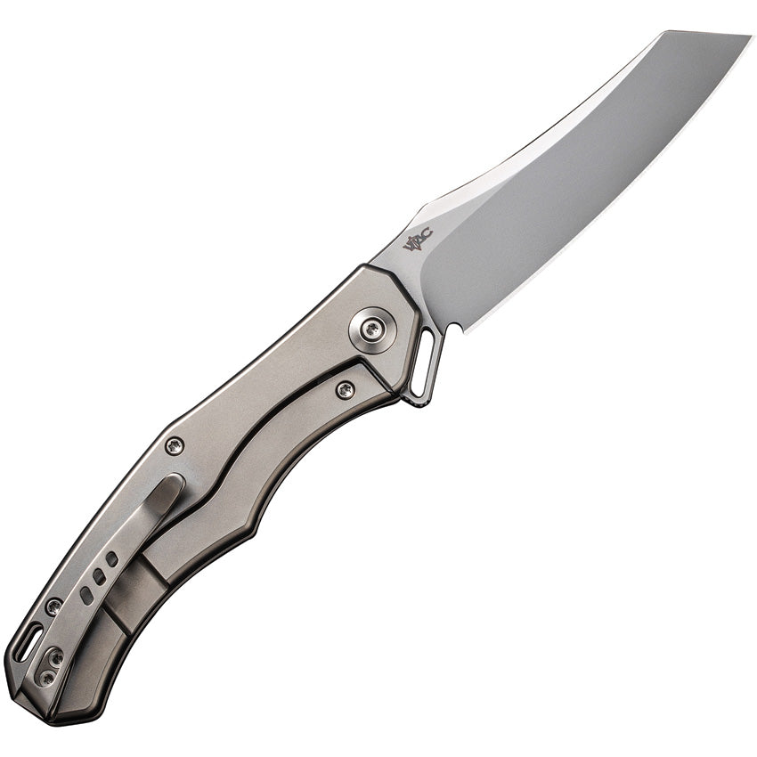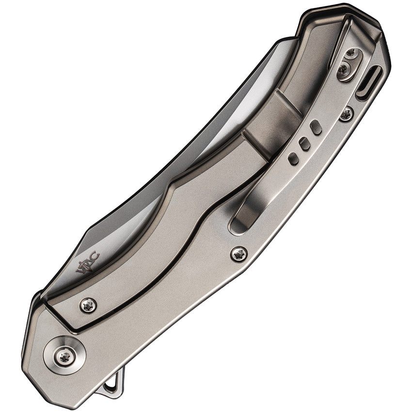 4.63" (11.76cm) closed. 3.63" (9.22cm) bead blast finish CPM-20CV stainless blade. Gray bead blast finish titanium handle. Extended tang. Lanyard hole. Pocket clip. Reverse tanto blade. Black nylon pouch. Boxed.