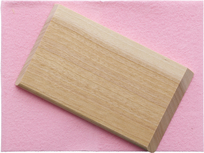 Dimensions: 4" x 5.13". Cloth polishes without any abrasives and maintains the sharpness of blades. The wooden plate features four sides, each a different angle making it easy to polish the back of V and U gouge blades. Hang packaged.
