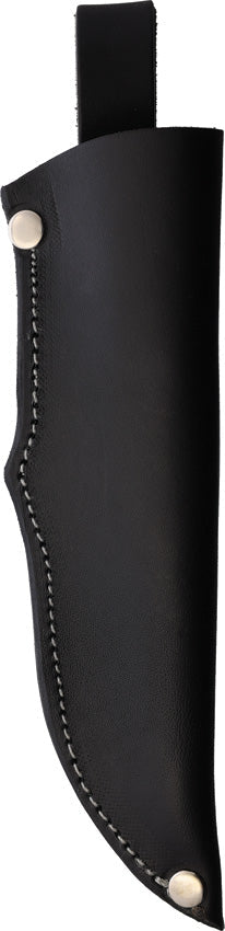9.75" (24.77cm) overall. 5" (12.7cm) satin finish X50CrMoV15 stainless drop point blade. Full tang. Ash wood handle. Black leather belt sheath. Boxed.