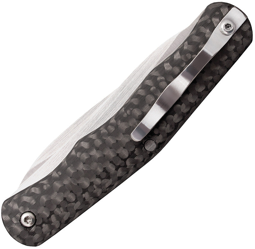 3.25" closed. Satin finish CPM S35VN stainless blade(s). Black carbon fiber handle. Pocket clip. Slip joint. Standard edge and serrated blades. Velvet pouch.