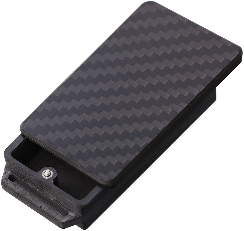 Dimensions: 2.75" x 1.45" x 0.6". Inner dimensions: 2.35" x 1.17" x 0.47". Slide top. Looped top. Carbon fiber construction. Bulk packed.