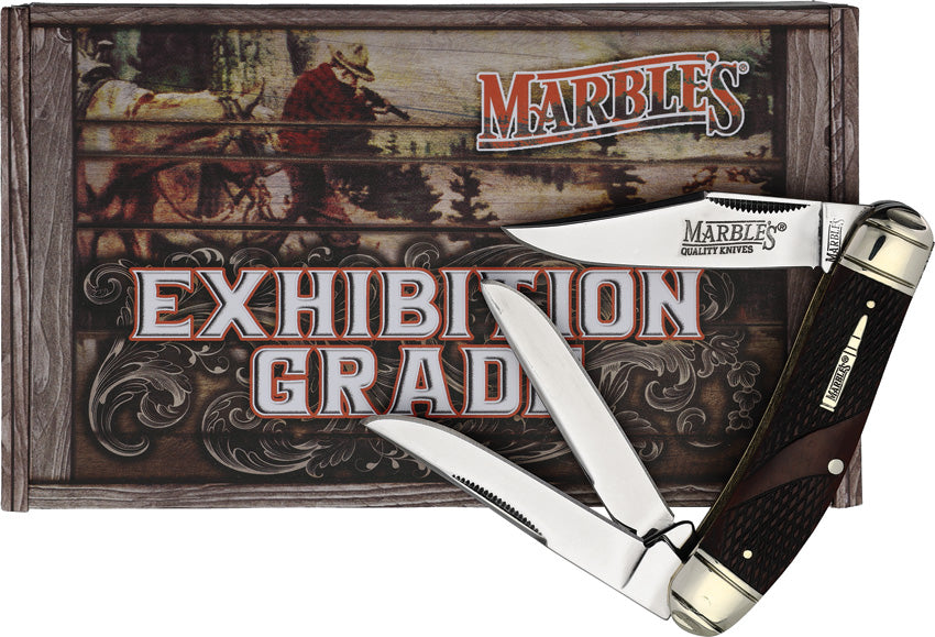 3.75" closed. Mirror finish stainless large clip, small clip, and spey blades. Brown checkered bone handle. Nickel silver bolster(s). Inlay shield. Boxed.