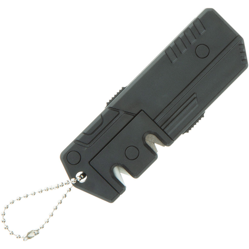 3.88" overall. Black GRN handle. Keyring. Ceramic and carbide sharpeners. Retractable tapered diamond honing stone. T8 Torx driver. Clam packed.
