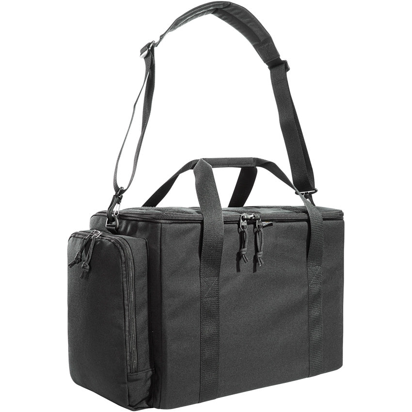 Dimensions: 12" x 17.25" x 9". Modular training bag for shooters. Padded handles. Lockable slide zippers. Detachable, length-adjustable carry strap. Lid with zip compartment. Three external compartments. Modular, interior detachable dividers. Magazine holders with loop backing. Exterior pocket with MOLLE field. Removable inner pockets for ammunition. Includes two TAC pouch Round VL and Internal holster VL. Cordura construction. Color: Black.