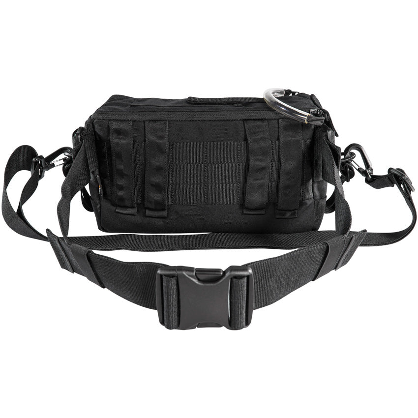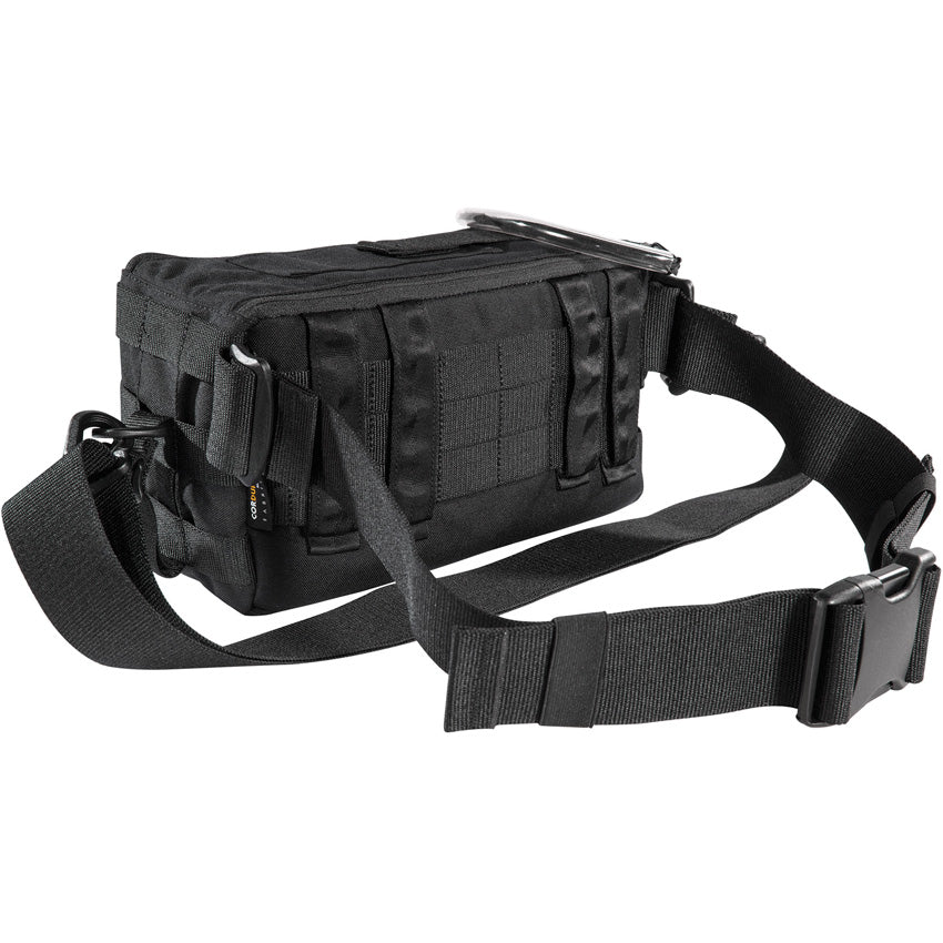 Dimensions: 10" x 6" x 5". 3 liter capacity. Hip bag with parallel zippers. Designed to be attachable to vests, hip belts, etc. Contents pictured not included. 700D Cordura construction. Color: Black. Bulk packed.