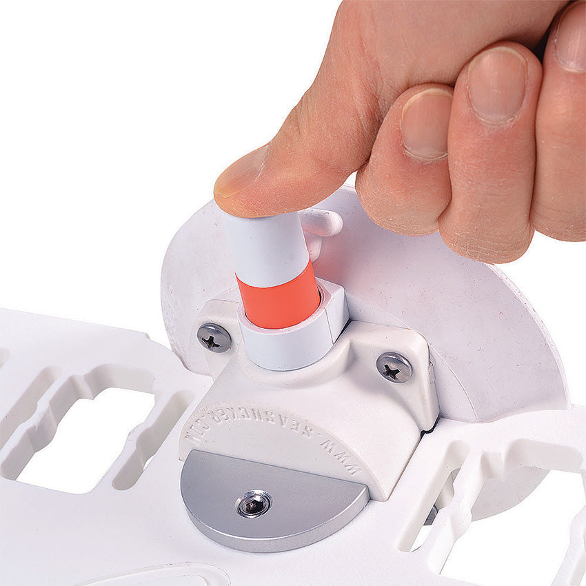 SeaSucker vacuum mount secure technology. Fits multiple tools and knives. Knife sheath slots for safe knife storage. Hook and lure holes. Suction mechanism attaches to fiberglass, glass, plastic, metal, and other smooth surfaces. HDPE industrial construction. Boxed.