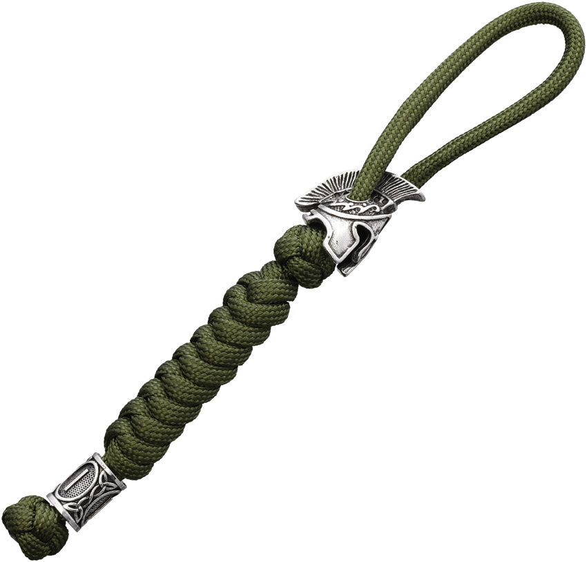 6.69" overall. Braided paracord with silver-colored spartan helmet bead and bonus Viking pattern bead at bottom. Bead types vary. The one pictured may not be the exact received. Color: Green. Bulk packed.