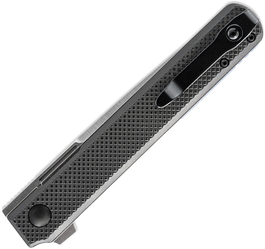 4.25" (10.8cm) closed. 3.75" (9.53cm) satin finish 154CM stainless blade. Black G10 handle. Extended tang. Pocket clip. Blue backspacer. Boxed.