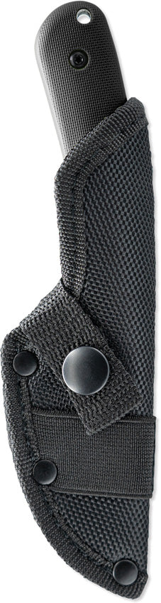 7" (17.78cm) overall. 3" (7.62cm) hammered finish 420 stainless spear point blade. Black nylon handle. Full tang. Lanyard hole. PVD coated blade with re-ground bevels. Black nylon belt sheath. Boxed.