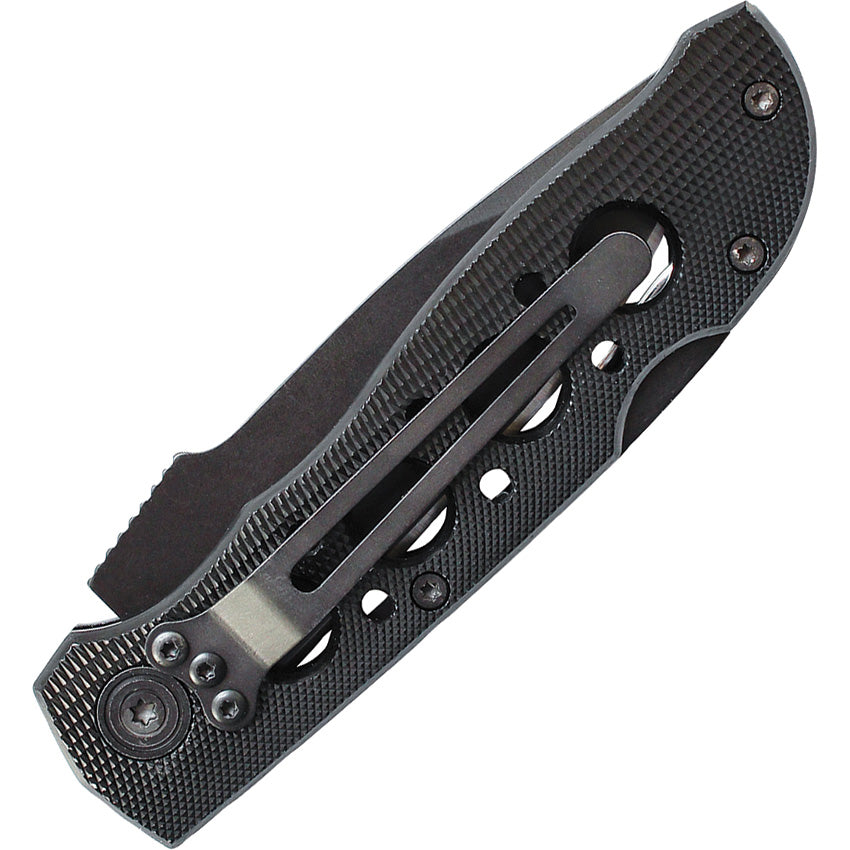 Closed: 4.125"; Blade: 3.25" l 7Cr17 High Carbon Stainless l Standard Edge l Black Finish; Handle: Black l Aluminum; Other Info: Pocket Clip l Thumb Ridge. Boxed.