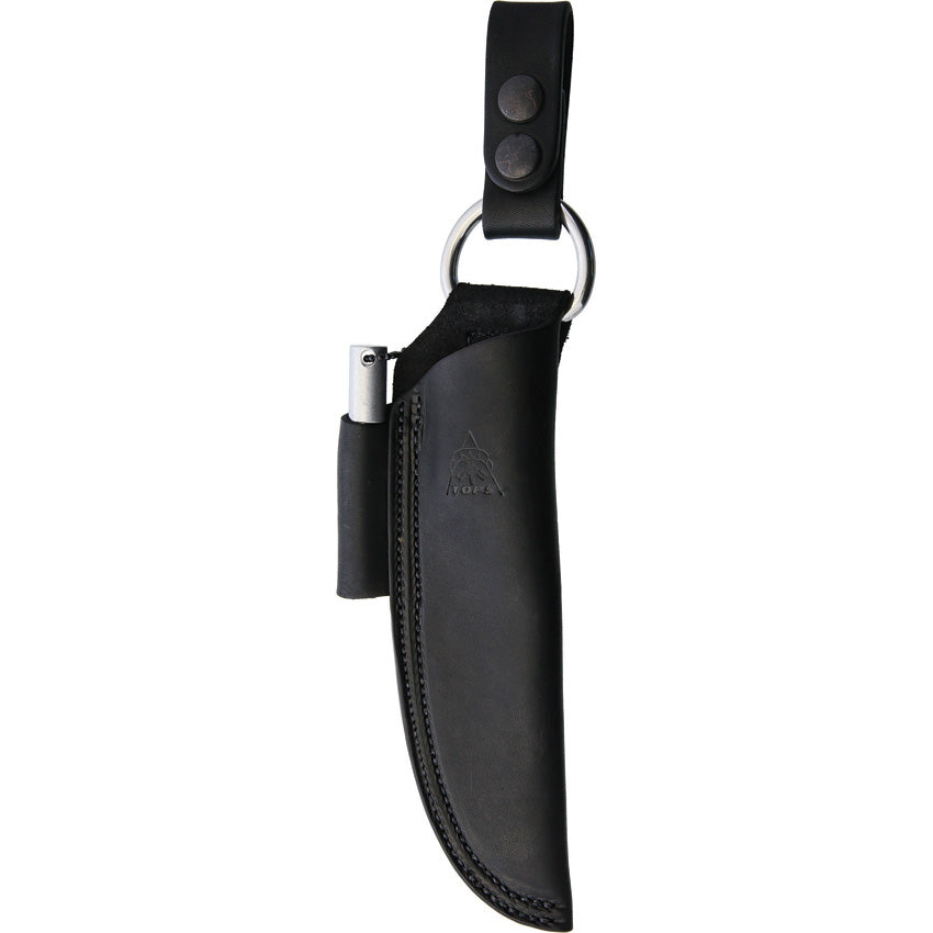 9.75" overall. 4.5" black finish 1095HC steel blade. Black linen micarta handle. Full tang. Comes with TOPS survival whistle and sharpening steel. Belt sheath. Designed by Gunnery Sgt Dave (Norseman) Williams.