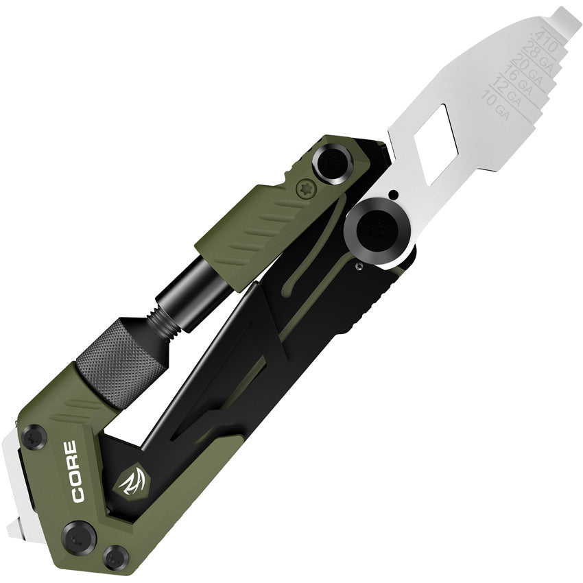 4" closed. For Shotguns. Change choke tubes. Remove jammed hulls. Punch pins. Adjust optics. Linerlocking tools. Carabiner-like function secures to MOLLE straps. Universal choke tube wrench fits: .410; 28; 20; 16; 12; 10 gauge and adjusts scope and red dot optics. Clam packed.