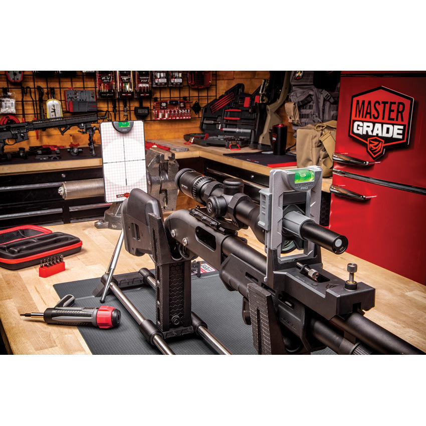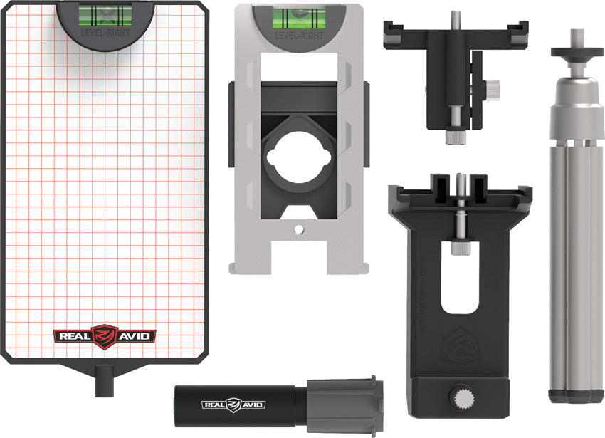 Includes: Precision alignment grid; Leveling device; Reticle light; Picatinny rail mount; Standard barrel mount; Adjustable tripod. Accurate scope mounting made easy. Boxed with hanging tab.