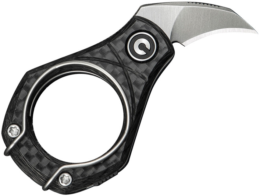 2.63"" (6.68cm) closed. 0.65"" (1.65cm) satin finish flat ground 14C28N Sandvik stainless hawkbill blade. Twill carbon fiber handle. Pocket clip. Finger ring. Slip joint. Boxed.