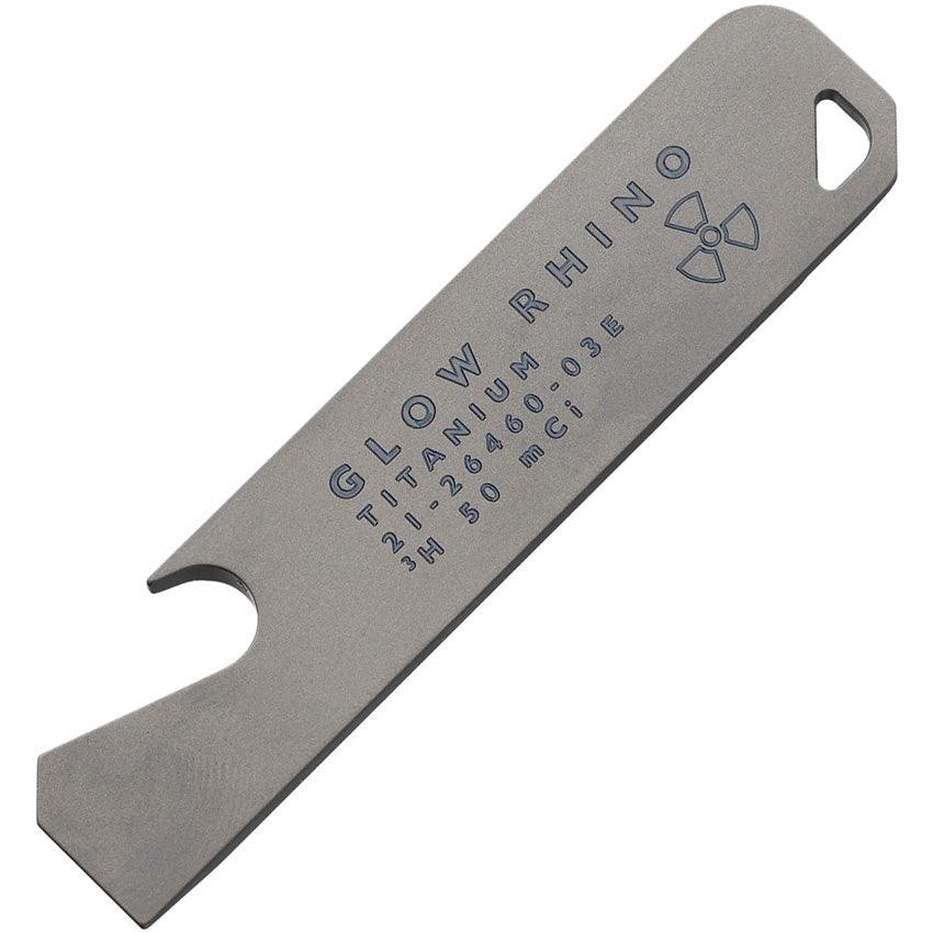3" overall. Tools include: Pry bar l Flat head screwdriver l Bottle opener l Lanyard loop. Titanium construction. XL Tritium insert (blue). TSA friendly. Boxed.