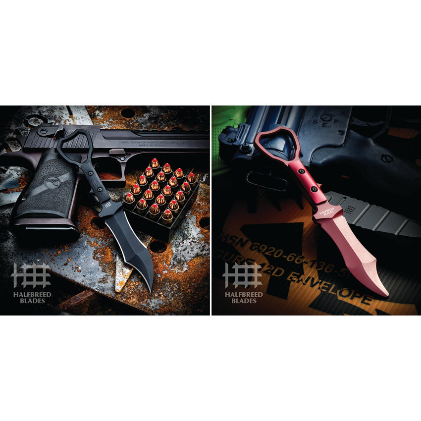 7,75" (19,69 cm) in tutto. Lama da 4" (10,16 cm) rivestita in Teflon nero Bohler K110 Talon in acciaio. Manico in G10 nero. Codolo pieno ed esteso. Design ad anello smussato con incavo concavo per il pollice. Identificatore del bordo vivo alla lunghezza di tre quarti della maniglia. Include la versione trainer del coltello con lama non affilata in acciaio inossidabile 420 rivestita in teflon rosso con punta tonda e manico in alluminio rosso. Sviluppato in collaborazione con l'istruttore CQC delle operazioni speciali Jared Wihongi. Fodero per cintura compatibile MOLLE in plastica stampata nera. In scatola.