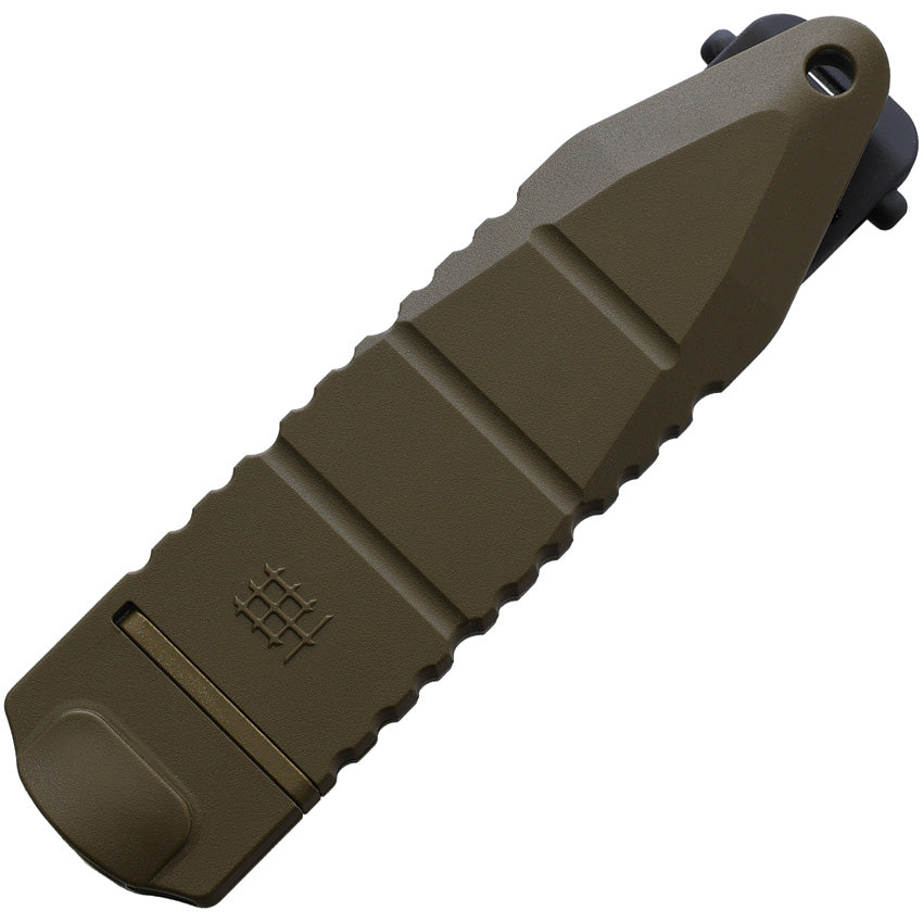 7,75" (19,69 cm) in tutto. Lama in acciaio Talon Bohler K110 verde DE da 4" (10,16 cm) rivestita in Teflon. Manico in G10 verde OD. Codolo pieno ed esteso. Design ad anello smussato con incavo concavo per il pollice. Identificatore del bordo vivo alla lunghezza di tre quarti della maniglia. Sviluppato in collaborazione con l'istruttore CQC delle operazioni speciali Jared Wihongi. Fodero per cintura compatibile MOLLE in plastica stampata nera. In scatola.