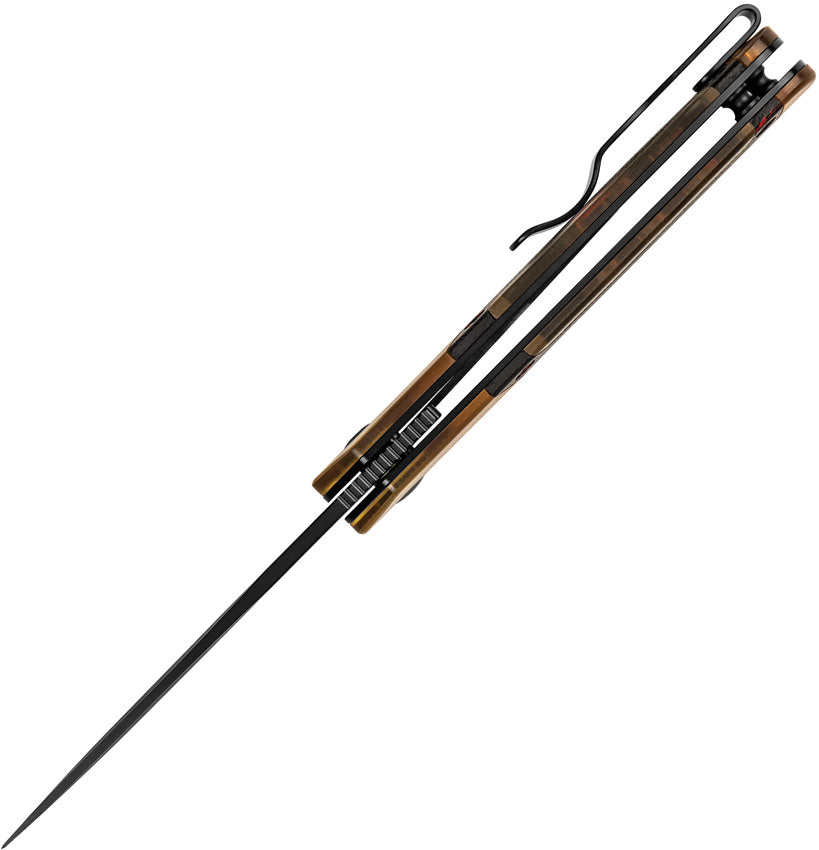 3.75" (9.53cm) closed. 2.75" (6.99cm) black stonewash finish Nitro V steel blade. PEI handle with Red and black G10 inlay. Extended tang. Thumb pull. Pocket clip. Boxed.