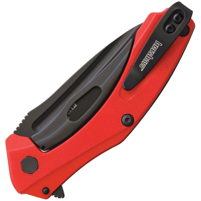 3,63" chiuso. Lama in acciaio 8Cr13MoV con finitura nera da 2,75". Manico in G10 rosso. Codolo esteso. Fermaglio da tasca. In scatola.